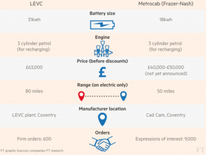 Although LEVC, formerly called the London Taxi Company, has a three-year head start over Metrocab, it has struggled to get its manufacturing operation off the ground as quickly as it had hoped.